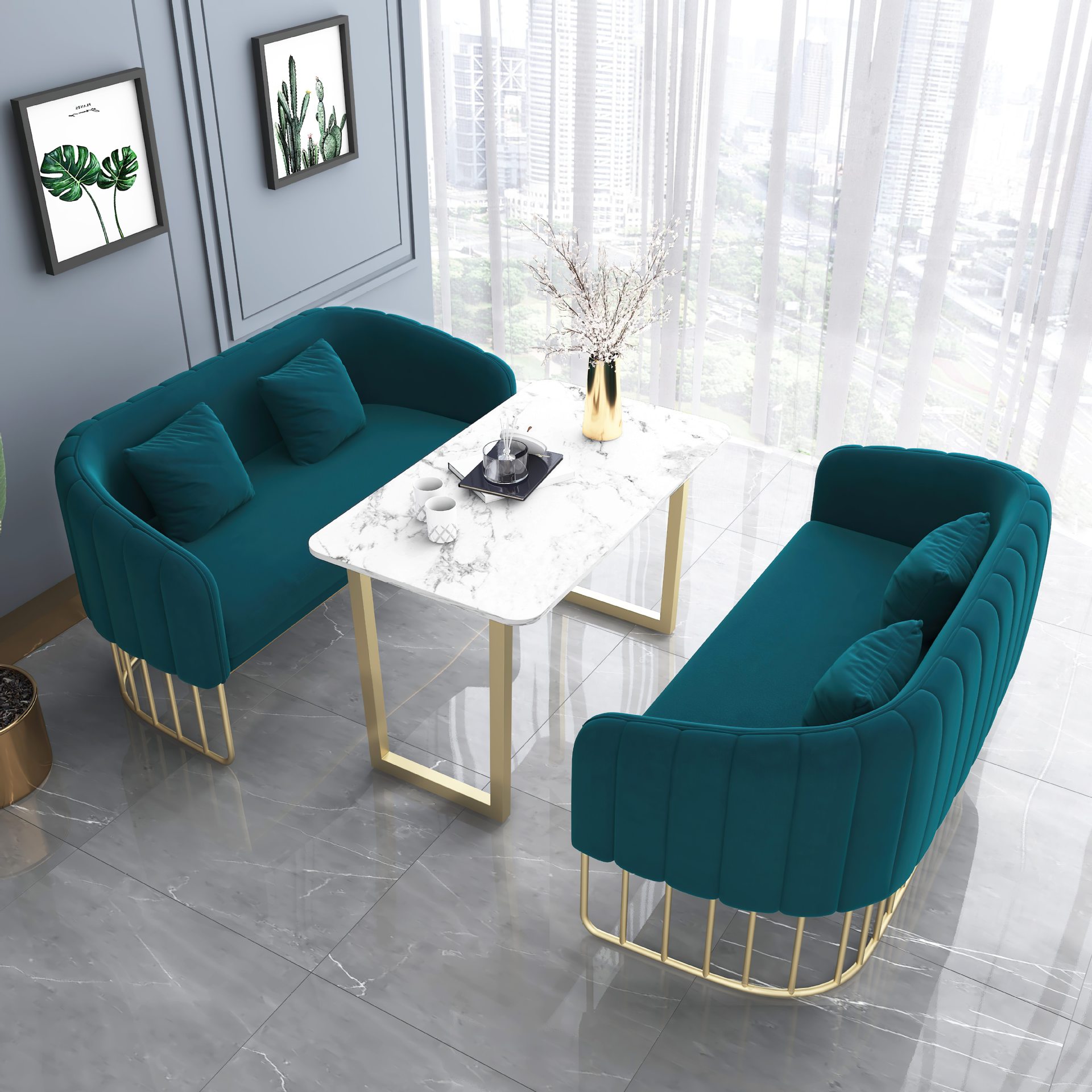 Nhà hàng phong cách bắc âu một bàn hai ghế kết hợp quán trà sữa khu vực nghỉ ngơi của khách hàng thẻ ghế ghế sofa sắt rèn ghế sofa da