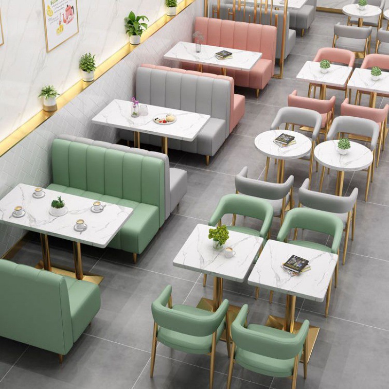 Nhà hàng sàn sofa bàn ghế kết hợp cửa hàng trà sữa snack cafe sofa sàn cửa hàng tráng miệng tươi bàn ghế