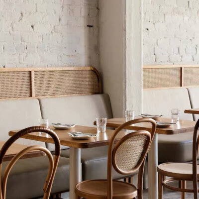 Nhà hàng tùy chỉnh bàn ghế gỗ mây tre đan phòng ăn dựa vào tường thẻ ghế sofa phân thay đồ kết hợp bàn ghế ăn cafe