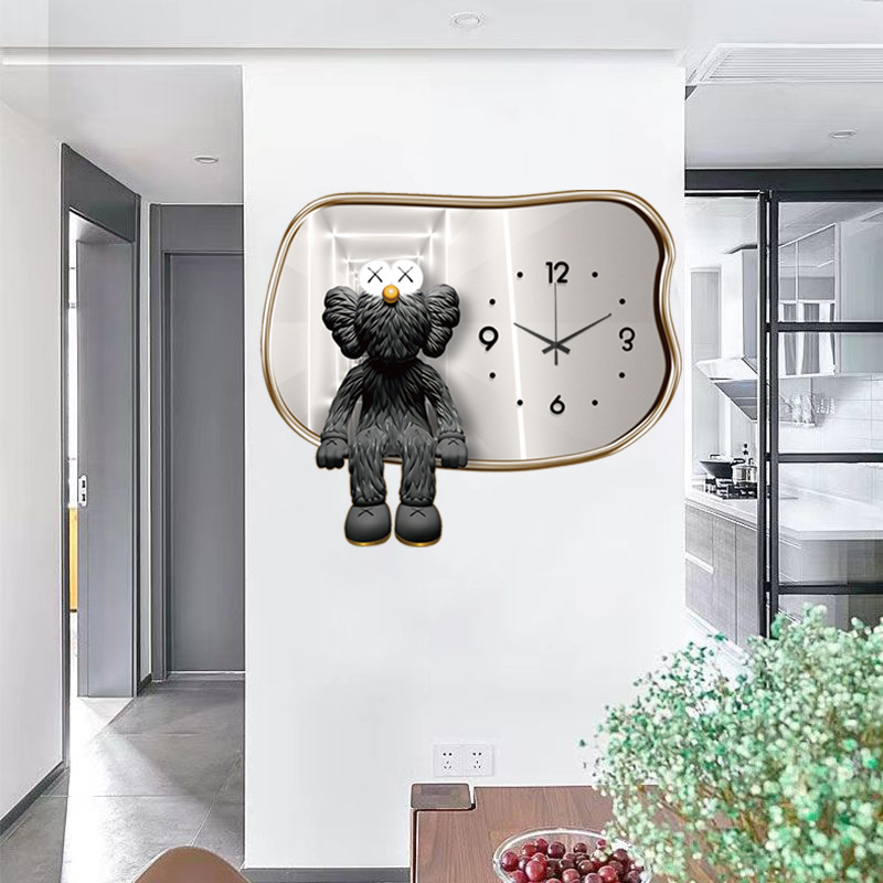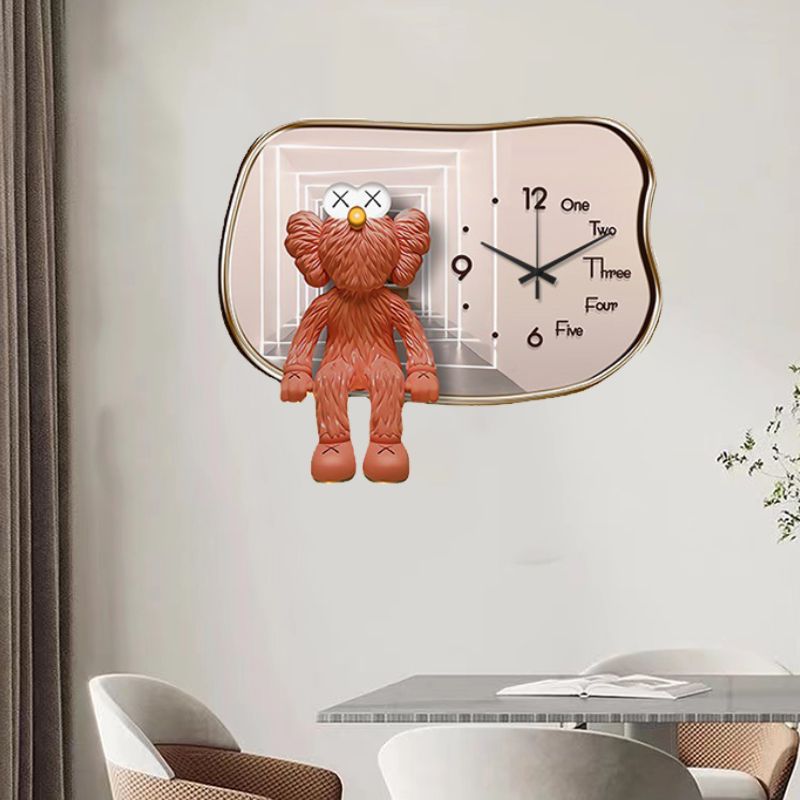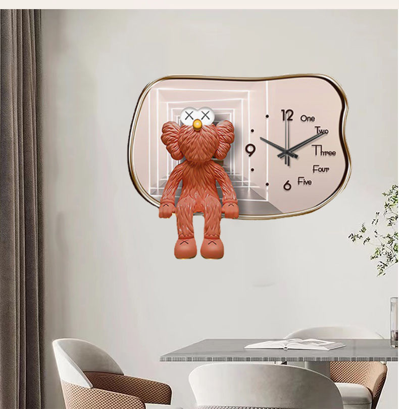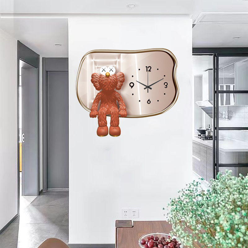 Nhà Máy Bán Buôn Bạo Lực Gấu Ánh Sáng Đồng Hồ Sang Trọng Đồng Hồ Treo Tường Phòng Khách Nhà Thời Trang Sáng Tạo Bầu Không Khí Đơn Giản Lưới Màu Đỏ Tường Trang Trí