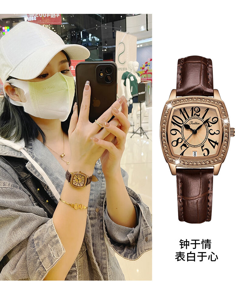 Nhà máy bán buôn kim cương vuông phong cách nổ xuyên biên giới màu nâu kỹ thuật số mặt số lớn đồng hồ nữ thạch anh chống thấm nước