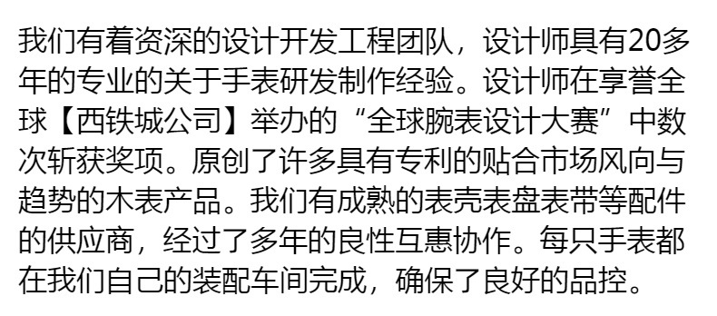 Bộ máy Thương hiệu: Nhật Bản MIYOTA Citizen được cấp bằng sáng chế Nguồn: Không Màu sắc: Gỗ phong xám/Xanh ngựa vằn/Teak/Rừng đỏ/Sồi xanh/Gỗ mun/Quả óc chó đen/Gỗ vằn/Gỗ ngựa vằn Mẫu mã: YS5545 Độ dày: 10 mm Tính năng đặc biệt: Chỉ báo 24 giờ Kiểu khóa: Nút chụp đôi hình bướm Đường kính mặt số: 41,8mm Hình dạng mặt số: tròn Chống thấm nước: Có Hiệu suất chống thấm nước: Chống nước vĩnh viễn Chất liệu khóa: Thép không gỉ Dịch vụ hậu mãi: Bảo hành tại cửa hàng Bao bì carton Nơi xuất xứ (trong nước): Tỉnh Quảng Đông Gia công và tùy chỉnh : có hoặc không cho xuất khẩu xuyên biên giới Nguồn cung cấp độc quyền: có Loại đáy của đồng hồ nam: thông thường Loại vương miện: vương miện xoắn ốc LOGO được in: Có Các nền tảng hạ nguồn chính: ebay/Amazon/wish/AliExpress/Independent station/LAZADA/Others/Others Nhãn hiệu riêng được ủy quyền: gương Chất liệu: Kính cường lực khoáng Danh sách gương Năm/Mùa: Mùa hè 2023 Loại màn hình: Con trỏ Phong cách: Kinh doanh Khu vực bán hàng chính: Châu Phi/Châu Âu/Nam Mỹ/Đông Nam Á/Bắc Mỹ/Đông Bắc Á/Trung Đông/Khác/ Khác Nhập khẩu: Không có máy Xuất xứ : Nhật Bản Chất liệu vỏ: Gỗ