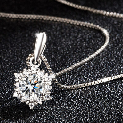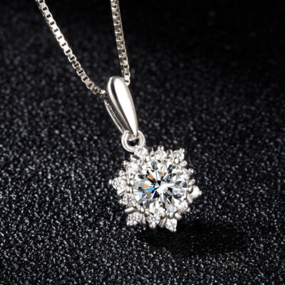 Nhà máy bán buôn Moissanite mặt dây chuyền vòng cổ bông tuyết 80 điểm mô phỏng mặt dây chuyền kim cương Moissanite phát sóng trực tiếp một mảnh thay mặt cho