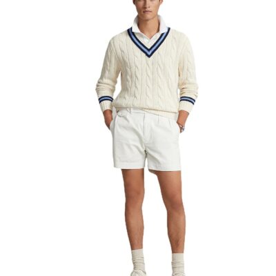 Nhà máy bán buôn thẻ logo tùy chỉnh cổ v cáp áo len cricket nam hàng dệt kim
