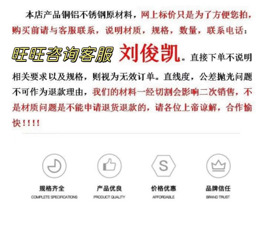 Dongguan city Changan Pu Hao metal materials经 营 范 围 经营进口美铝板(ALCOA)/铝棒,环保铝板/铝棒/铝管,特种无缝铝管,高硬度铝合金板,各种航空铝板,超声波专用铝板,各种模具铝板,轮船专用铝板,特种铝合金等。 【铝板牌号】7075/7050/7055/7475/6061/6082/5052/5083/3003/2024/2014/ 2017/1100/1070/1060/1050/ 【铝棒牌号】7075/7005/7003/7050/6061/6063/6020/6201/6262/6082/2011/ /2024/2017/2014/3003/5052/5056/5N03/5083/1435/NC1/NC2/NC0/NC5/NC6 【铝管牌号】7075/6063/6061/5052/5083/5056/7003/1435/6082/NC6/F21/ 2024/NC5 【无缝铝管】6061/6063/2024/5056/5052/NC5/7075 【铝排/六角铝棒牌号】6061/6063/6262/6201/6020/6082/7075/7005/7003/2011/ 2024/2017/2014/5052/5056/5083/1100/1060/1070/1050/1435/NC0/NC1/NC2/ NC5/NC6 【进口铝板】1100、2024、5052(韩铝)、6061、7075(美铝)、7050(美铝)、7475(美铝)、7005 7055 6082 厚度:0.1-500mm 【进口铝棒】 2011、2017、2024、5052、6061T6511、7075T651(美铝) 直径1~500 mm 【国产优质合金铝板】 7075-T6/T651 6061-T6/T651 5083-H112东北轻6082-T651 2017-T4 5052 广州板3003-H14 1100 H14 1050H24 1060H28 厚度:0.1~500 mm 【 国产优质合金铝棒】2017-T3/T8 2011-T3/T82024-T46061-T651 6063-T6 7075-T651 7005 1100H14 直径:1 -500 mm 【特殊牌号材料:板(棒)】 5005 5154 5056 6351 6060 6262 6082 7003 7005 7475 直径:1-160 mm 【优质氧化铝管】6061、6063、7075、5083 2024 5056 5052 7005 壁厚0.1*300 mm 【无缝铝管】5052 6061 6063 5056 2024 7075 壁厚2*90 mm