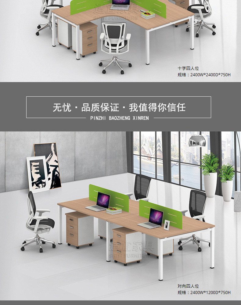 板式办公桌、会议台、文件柜、屏风卡位等系列产品可以定制,包括尺寸规格,板材、面料可按色板选择定制价格另算,定制家具请在线咨询客服或拨打服务热线。