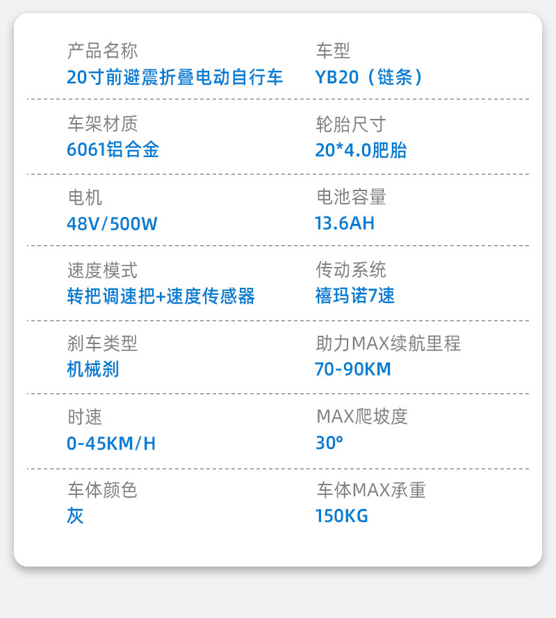 Được cấp bằng sáng chế hoặc không Nguồn hàng: Không Màu sắc: Xám/ Có thể tùy chỉnh các màu khác/ Có thể tùy chỉnh các màu khác Mức cấu hình: Tiêu chuẩn Trọng lượng cơ thể: 25kg (đã bao gồm) -50kg (đã bao gồm) Model: YB20 Phương pháp phanh: Phanh đĩa trước và sau Cho dù đó là xe thông minh: Xe không thông minh Chất lượng xe: Tham khảo dịch vụ khách hàng Loại pin: Pin Lithium tùy chỉnh xử lý: Có hoặc không Nguồn cung cấp độc quyền cho xuất khẩu xuyên biên giới: Không Kiểu dáng: Gấp gọn Tuổi thọ pin điện: 55km (bao gồm) -65km (không bao gồm) Kích thước bánh xe: 20 Inch có phải là tiêu chuẩn quốc gia mới hay không: tiêu chuẩn quốc gia mới Thương hiệu: Sky Axis Số mặt hàng: YB20 3C Số chứng nhận: 20203011119000045 Trường hợp áp dụng: Lái xe thay thế, hỗ trợ thể thao Tốc độ tối đa: 25km/ h trở xuống Đối tượng áp dụng: Người lớn Thông số kỹ thuật: YB20 Chất liệu khung: Hợp kim nhôm Giới tính áp dụng: Unisex Tải trọng: 100kg (bao gồm) -150kg (không bao gồm) Điện áp: 48V Thời gian bảo hành pin: Một năm Có thể gập lại được không: Có Dung lượng hạt nhân: đơn