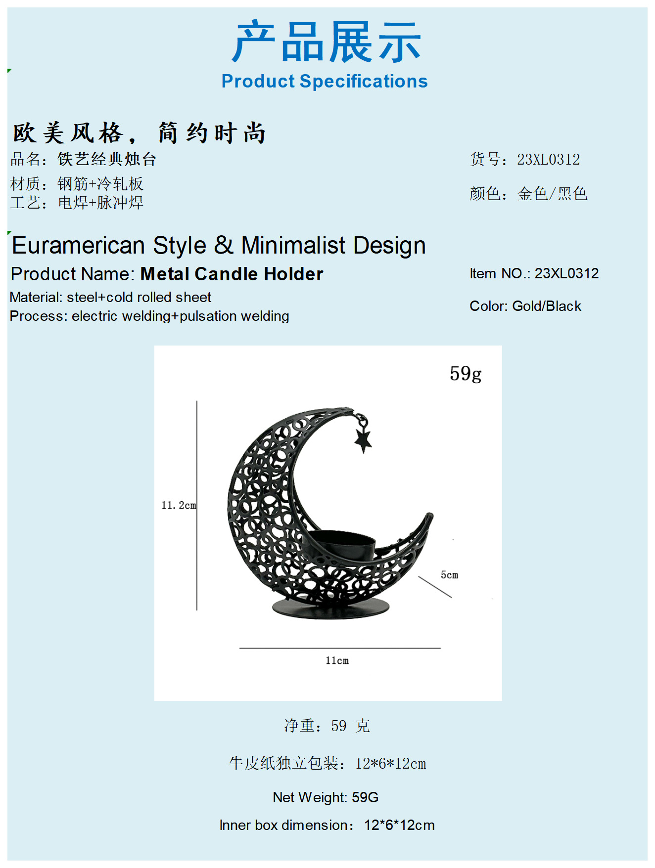 Nhà máy bán hàng trực tiếp xuyên biên giới Chân nến sắt phong cách Trung Đông nến mặt trăng ba chiều cốc phim và đạo cụ truyền hình trang trí phòng khách phòng ngủ là lựa chọn lý tưởng cho không gian công cộng, sân vườn hoặc khu đô thị. Sản phẩm giúp nâng cao hình ảnh chuyên nghiệp và sạch đẹp cho môi trường sống.