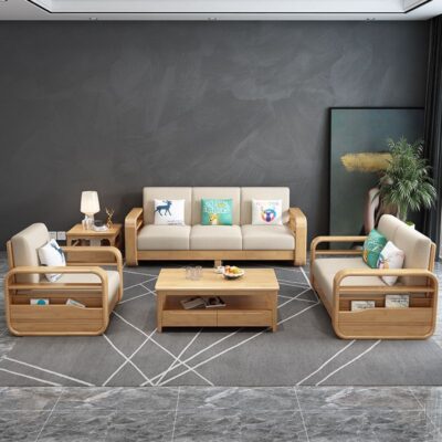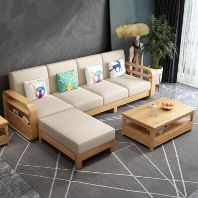 Nhà máy bán trực tiếp Bắc Âu sofa gỗ đặc căn hộ nhỏ đơn đôi ba người góc ghế dài kết hợp sofa