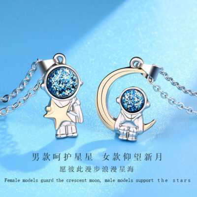 Nhà máy bán trực tiếp cặp đôi phi hành gia vòng cổ cặp nam và nữ xương đòn kỷ niệm ánh sáng sang trọng thích hợp cho quà tặng bạn gái