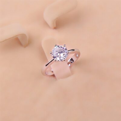 Nhà máy bán trực tiếp nhẫn nữ sáu móng một carat nhẫn sống miệng nhẫn nữ zircon mạ bạc cho cặp đôi trang sức đầu tiên của phụ nữ bán buôn