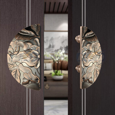 Nhà máy bán trực tiếp tấm nhôm bán nguyệt tay nắm cửa kính tay nắm cửa chạm khắc kiểu Trung Quốc mới cửa gỗ tay nắm cửa khách sạn