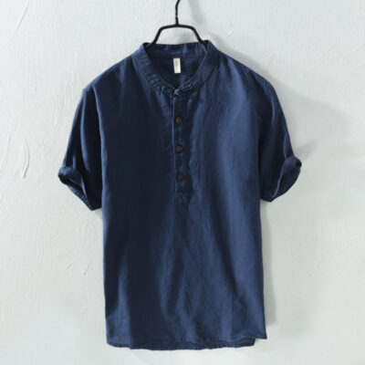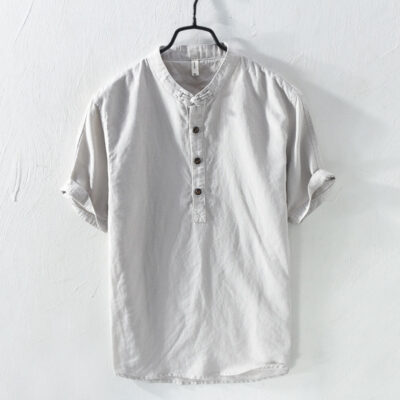 Nhà máy cung cấp trực tiếp áo sơ mi ngắn tay vải lanh cotton thông thường cho nam, áo sơ mi vải lanh kích thước rộng rãi, phiên bản mỏng hợp thời trang