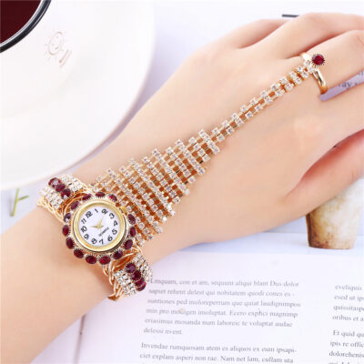 Nhà máy cung cấp trực tiếp nhà máy mới Khorasan xu hướng phụ nữ đầy đủ kim cương chuỗi móng vuốt bộ nhẫn đồng hồ đeo tay nữ đồng hồ thời trang
