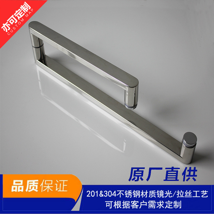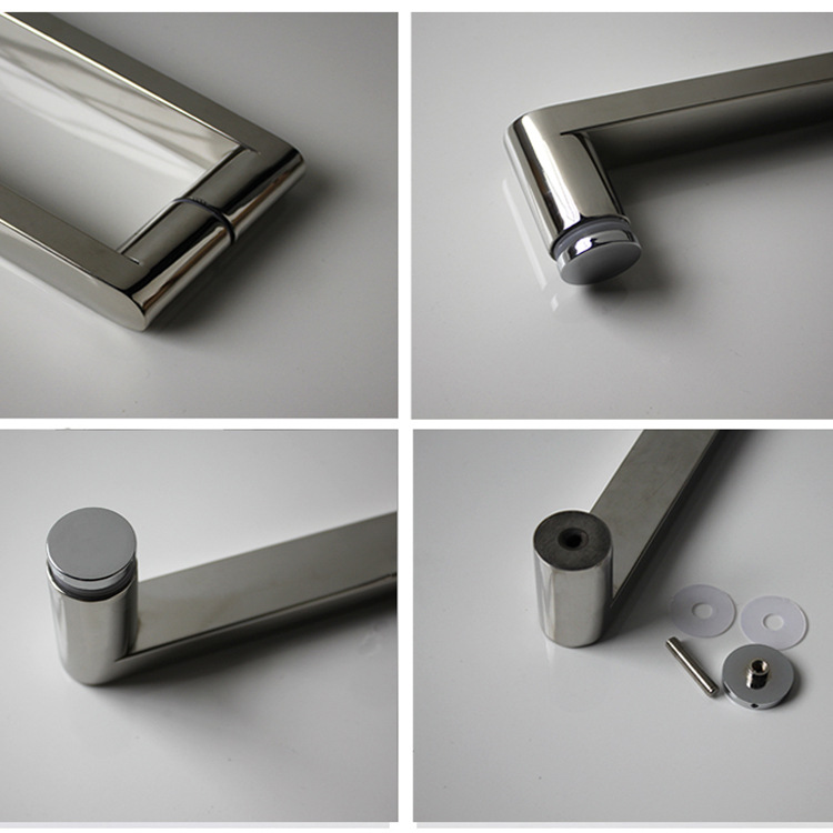 Nhà máy cung cấp trực tiếp ống thép không gỉ dày vuông tay cầm phòng tắm hình chữ L cửa hàng khách sạn văn phòng Tay nắm cửa kính