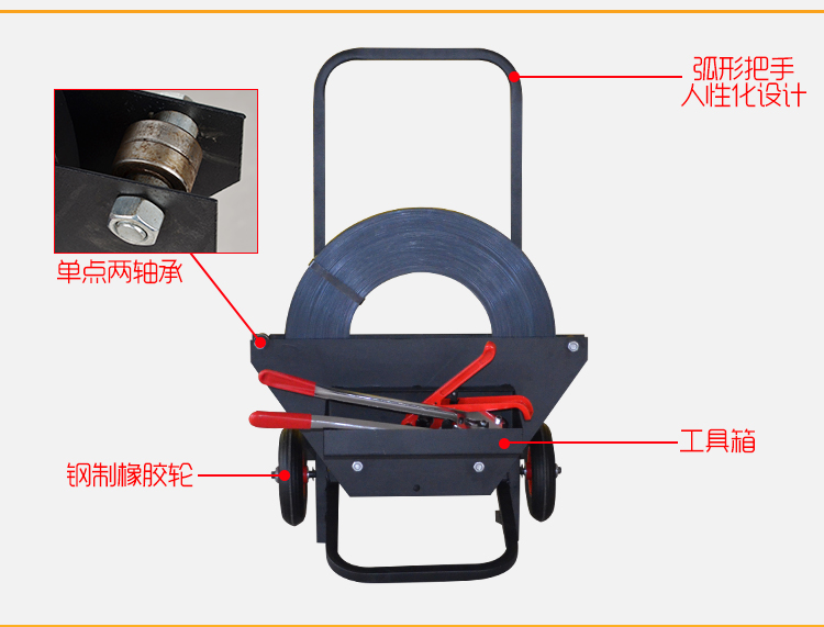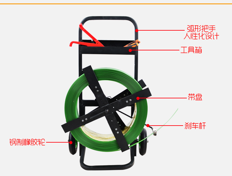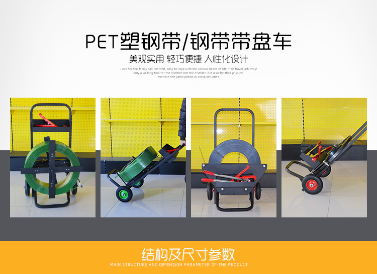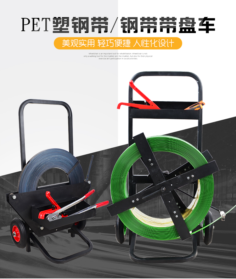 Nhà máy đóng gói dây đai đóng gói Xe đẩy dây đai nhựa-thép tiện lợi có phanh phụ trợ khung máy công cụ đóng đai