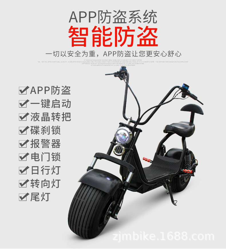 配置:60v12A铅酸电池,可以升级锂电池可拆卸锂电池加200,前双减震,后双减震,1500w无刷电机,9.5寸真空轮胎,前后液压碟刹,送大灯,送碟刹锁,送一键启动防盗器,送专用钥匙,送大坐垫带靠背,送后脚蹬,送左右转向灯刹车灯,送液晶显示速度电量转把,续航30-40公里,如需续航50-60公里换20A锂电池,时速30-40km/h