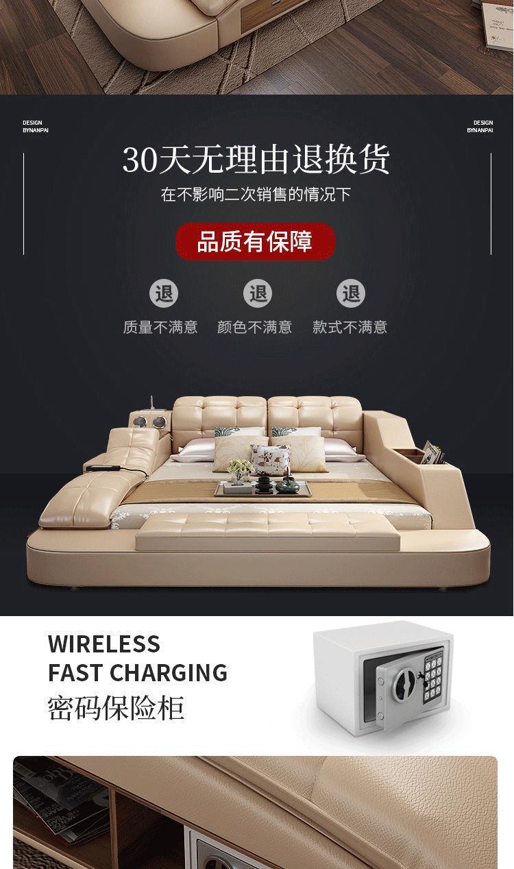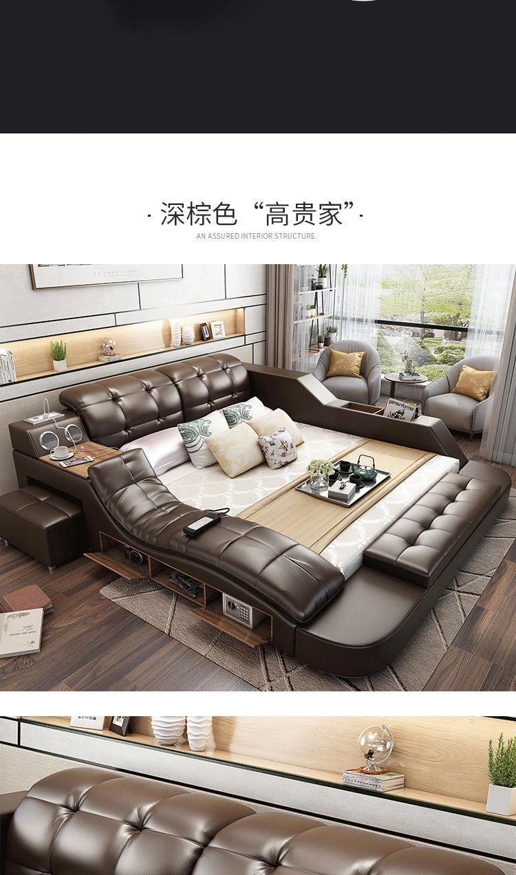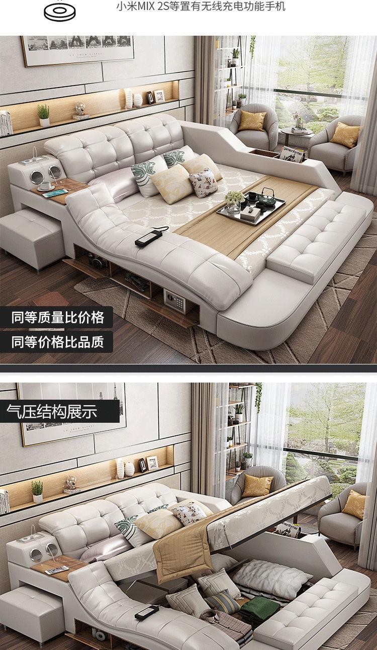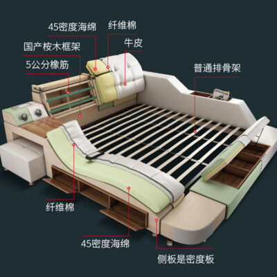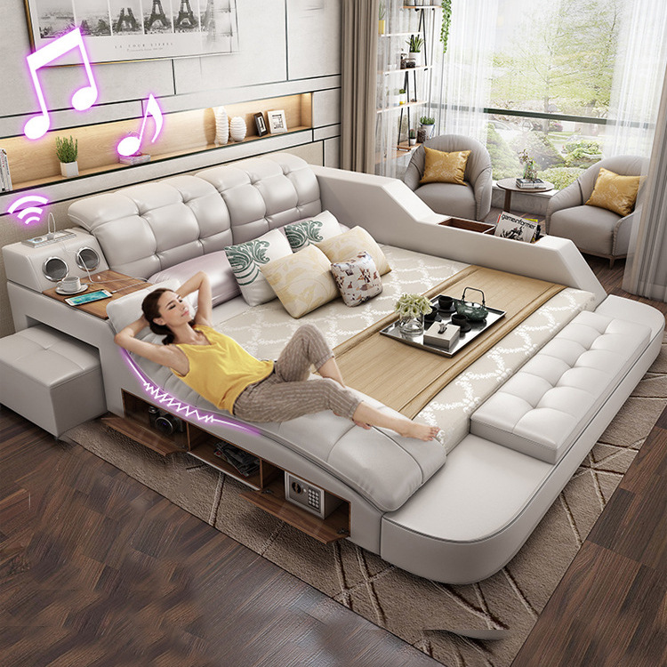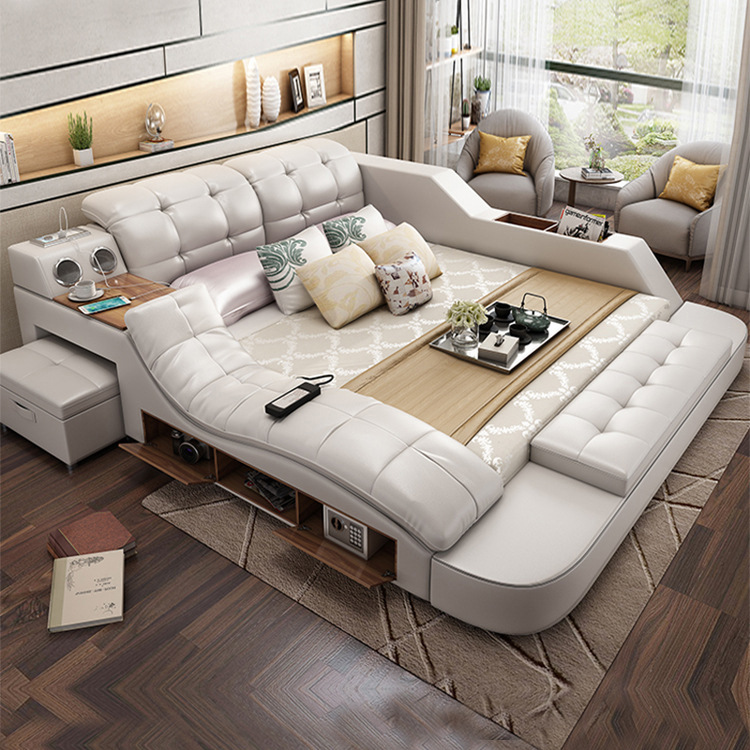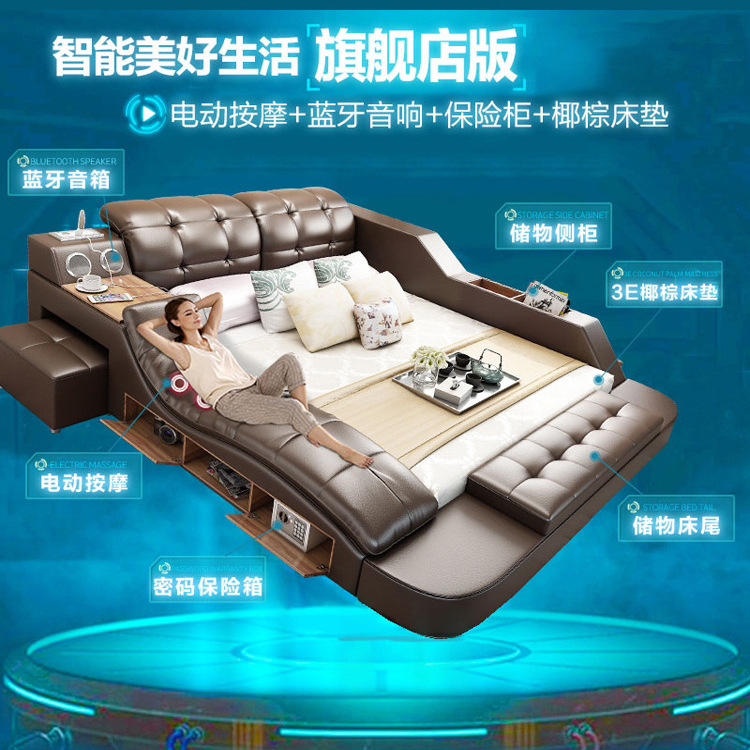 Nhà máy giường da đa chức năng massage thông minh giường tatami 2 mét giường đôi hiện đại tối giản phòng ngủ chính hôn nhân giường