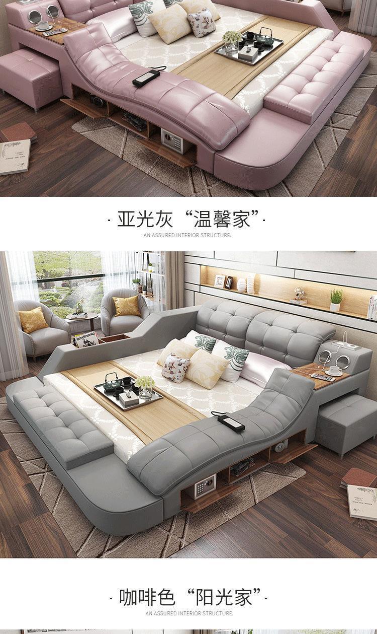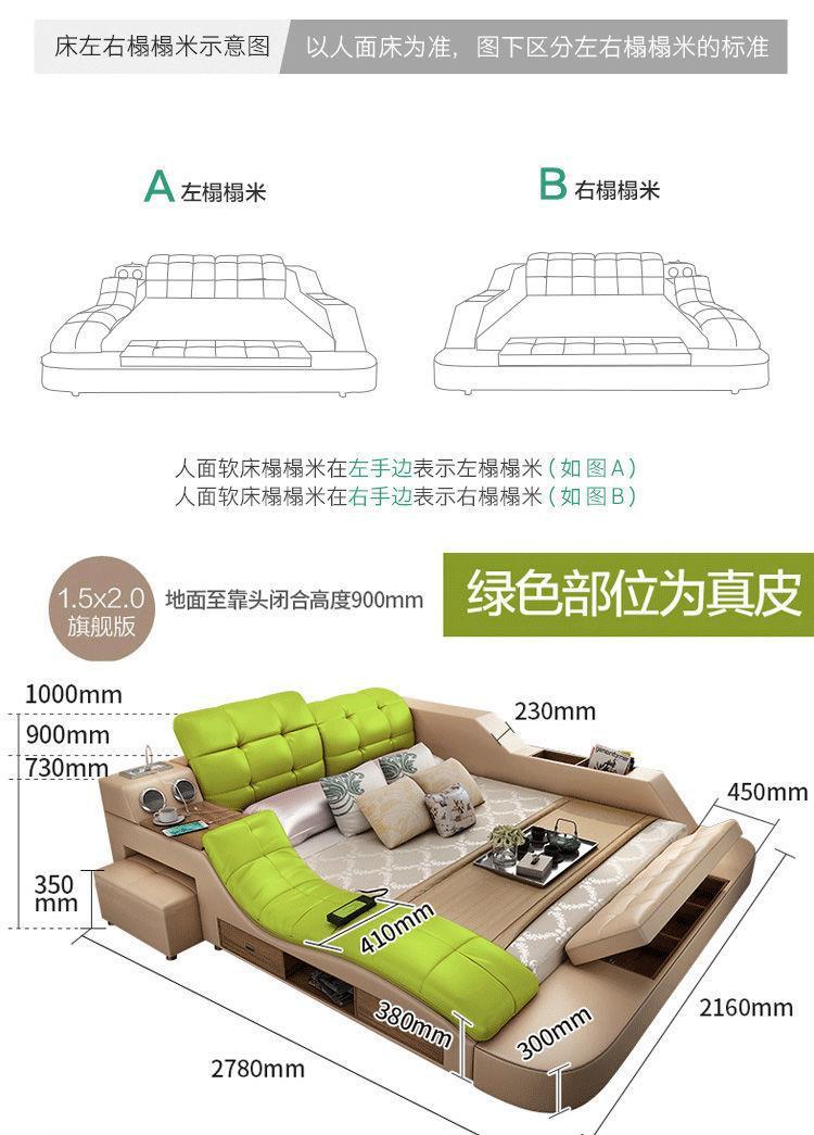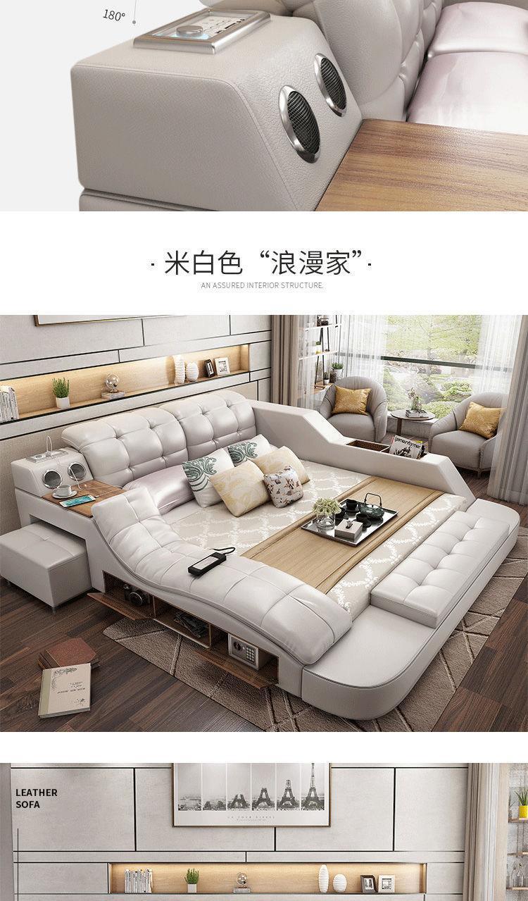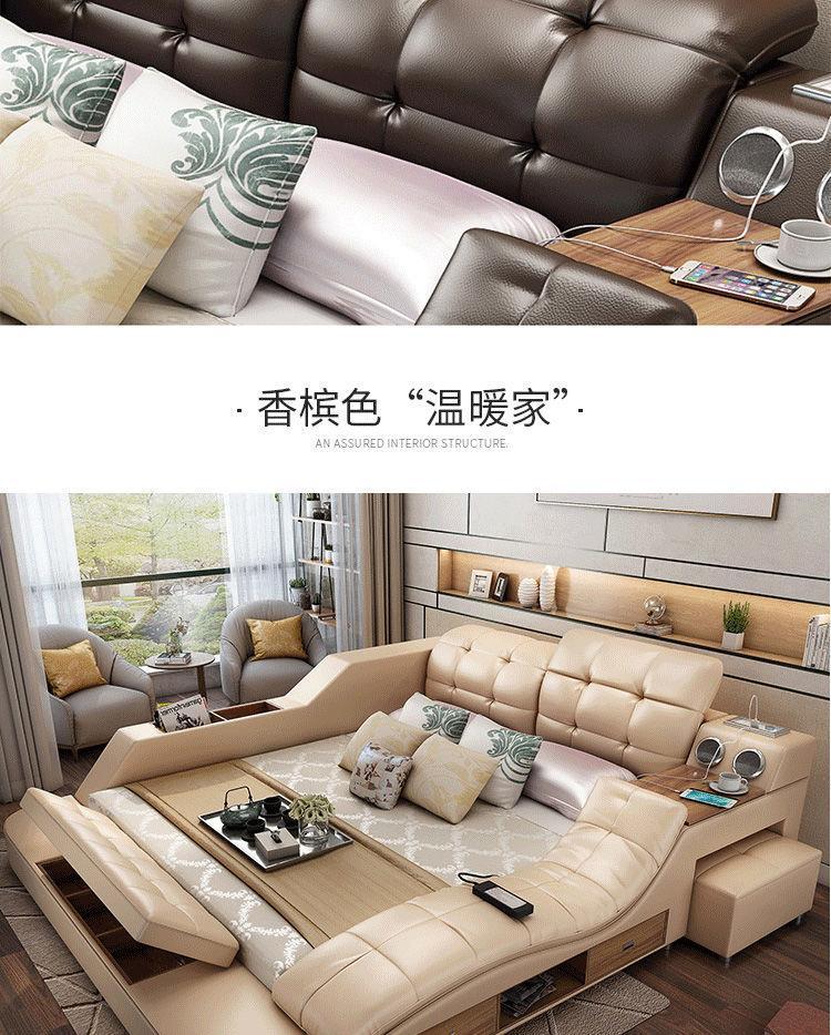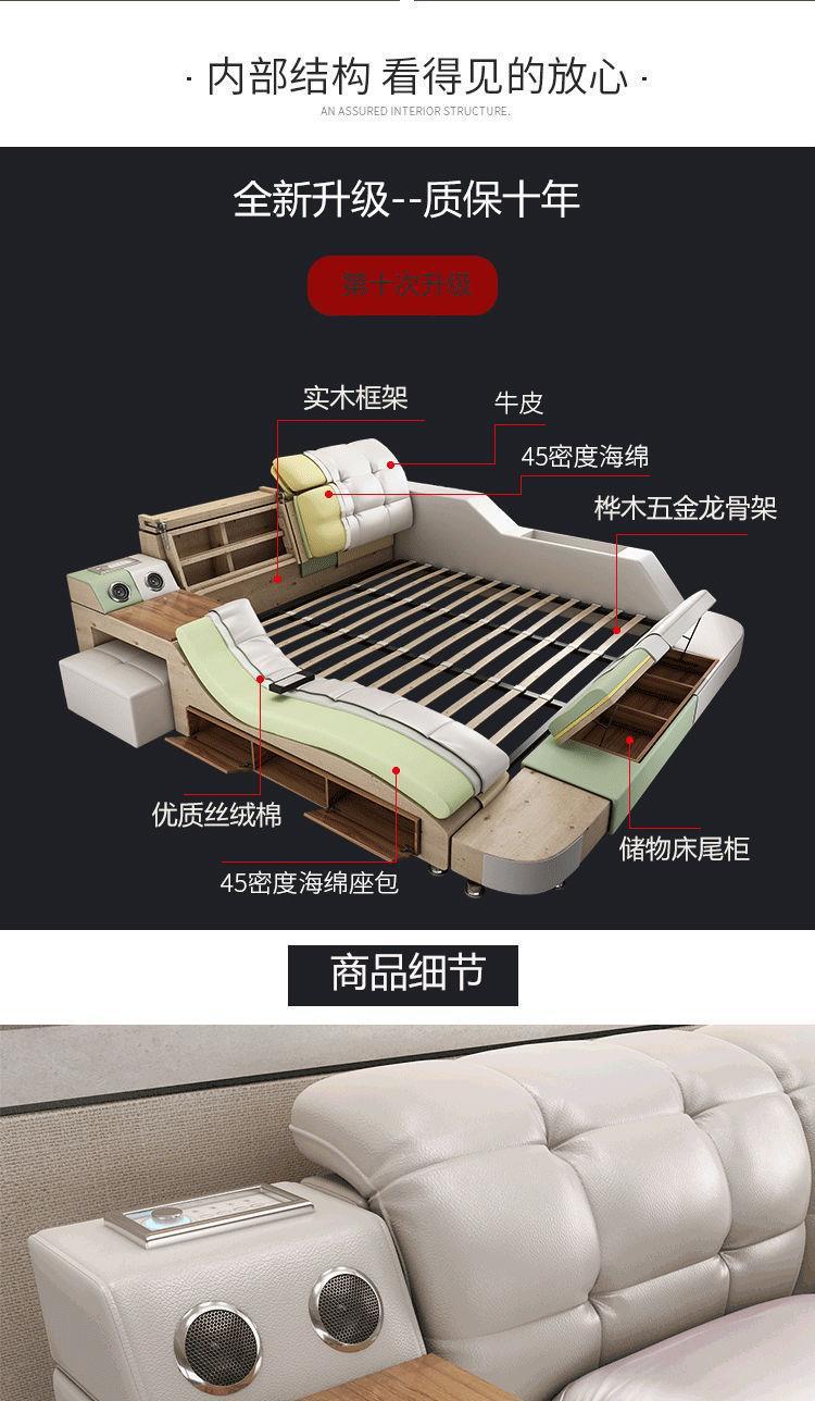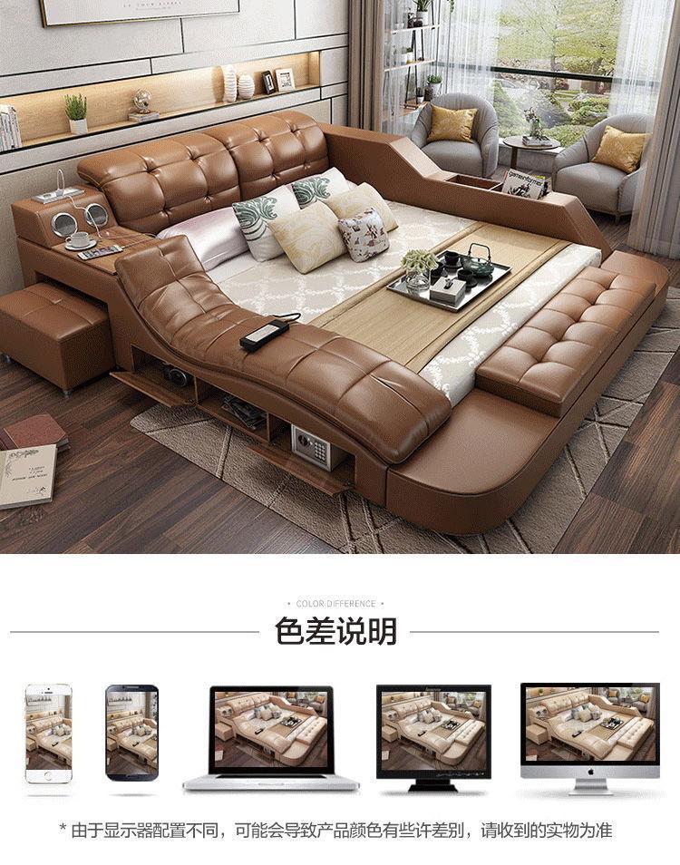 Nhà máy giường da đa chức năng massage thông minh giường tatami 2 mét giường đôi hiện đại tối giản phòng ngủ chính hôn nhân giường