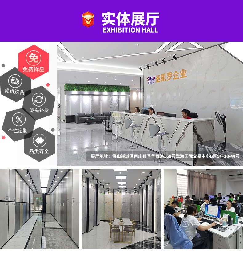 佛山市圣凯罗建材有限公司始创于2014年,总部位于南国陶都-广东佛山,是注重国内外经销批发的瓷砖建材生产与销售公司。圣凯罗建材产品齐全,有通体大理石、微水泥、全抛釉、超平釉、金刚石、仿古砖、木纹砖、瓷抛砖、生态石、岩板、K金通体、楼梯砖、瓷片系列及各种装饰配件品类,致力于打造以消费者为核心的定制、个性化中高端瓷砖C2B平台,实现瓷砖全屋设计、定制、加工、配送一站式服务。圣凯罗建材,继续秉承”诚信为本”的核心价值观,和不断开拓进取、不断创新产品和品质的理念,为用户创造价值,共同推进行业的健康成长和发展,并致力于成为行业有影响、受尊重的品牌。温馨提示:您所购买的产品都是佛山市圣凯罗建材有限公司工厂生产,但公司产品多,也有兄弟品牌,避免不了其它品牌发到您的手中!请亲见谅!联系人:颜小姐  联系电话:13929918694/0757- 82702399 联系地址:广东省佛山市禅城区南庄镇瓷海国际陶瓷交易中心B区9座38-44号。