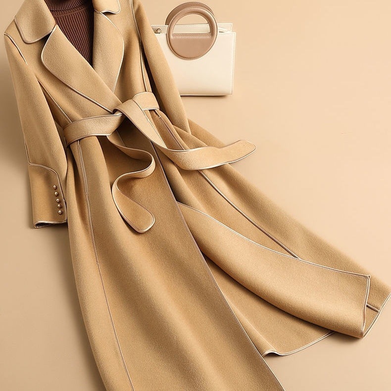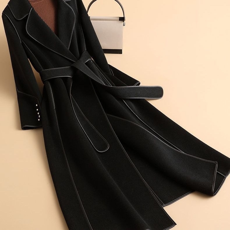 Nhà máy sản xuất áo khoác len hai mặt áo khoác len bán hàng trực tiếp mới chống mùa quấn cạnh mùa xuân và mùa thu áo khoác nữ mỏng