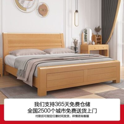 Nhà máy sản xuất giường gỗ sồi nguyên khối bán trực tiếp Giường đôi 1,8m 1,2/1,35m Giường trẻ em 1,5m Phòng ngủ chính căn hộ nhỏ