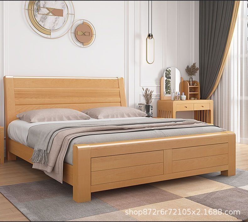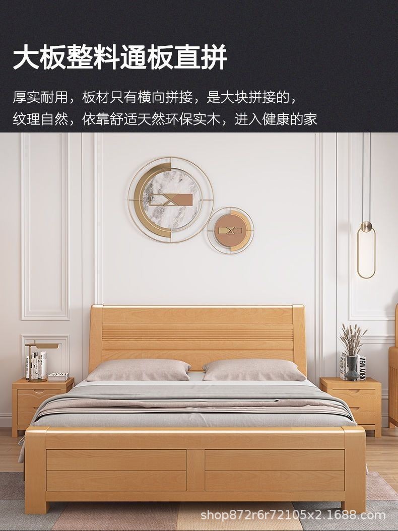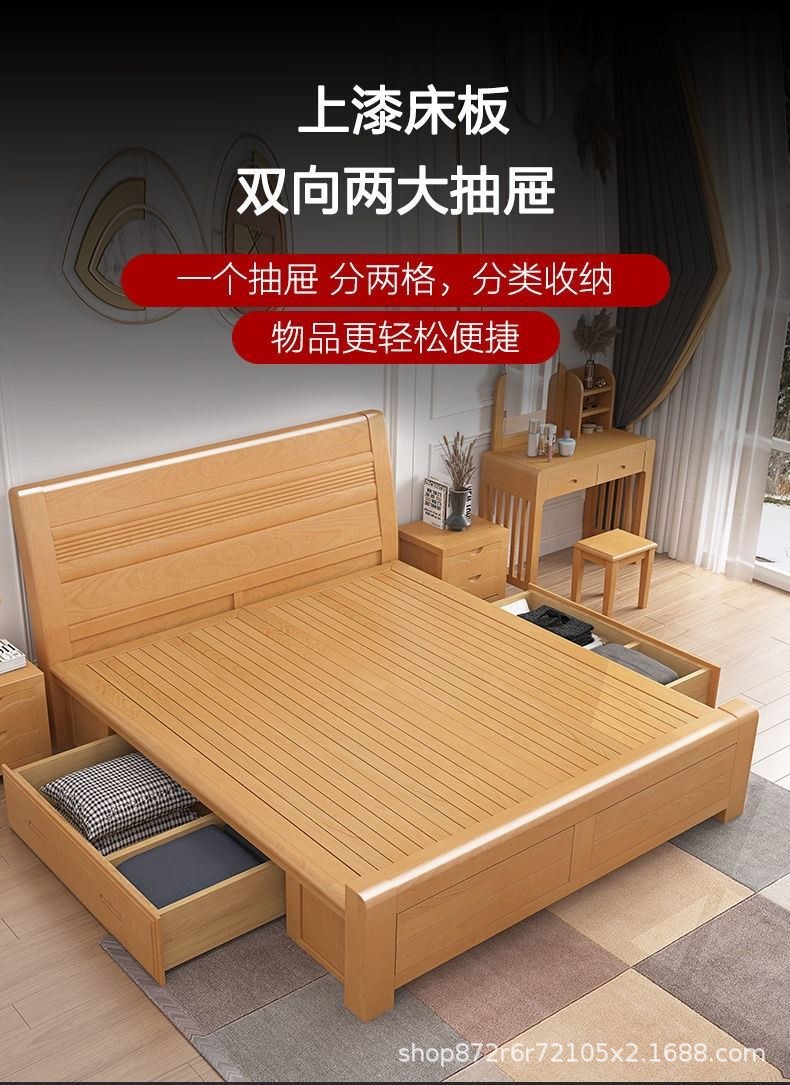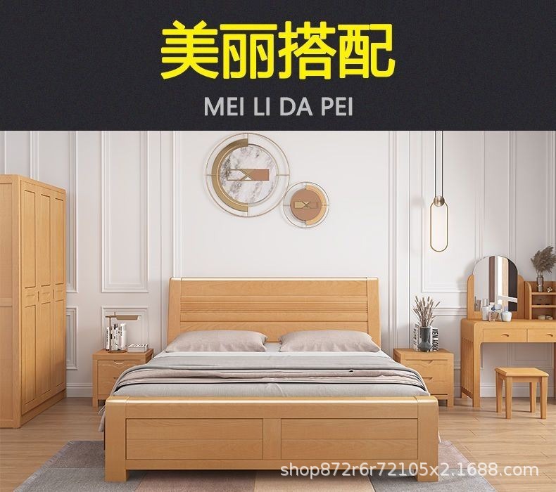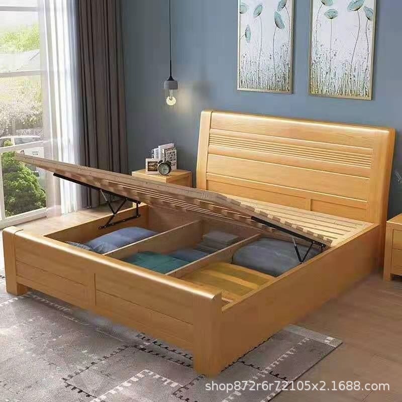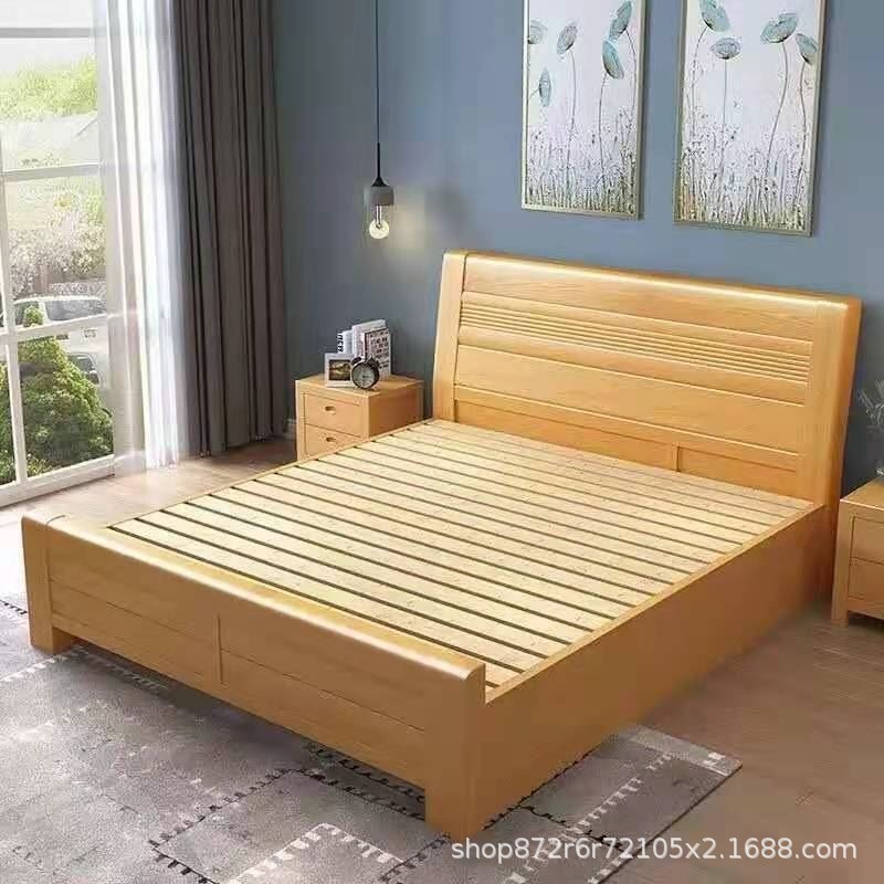 Nhà máy sản xuất giường gỗ sồi nguyên khối bán trực tiếp Giường đôi 1,8m 1,2/1,35m Giường trẻ em 1,5m Phòng ngủ chính căn hộ nhỏ