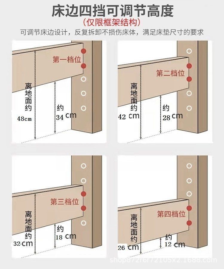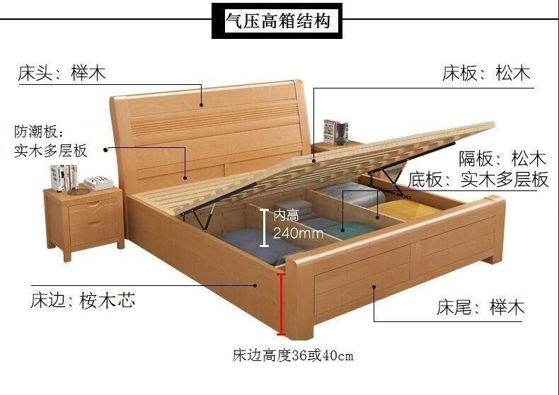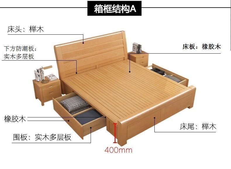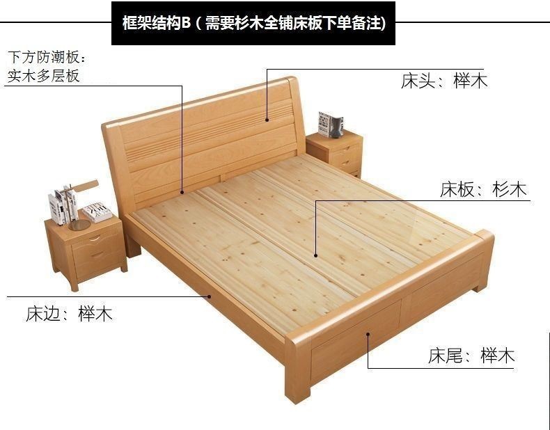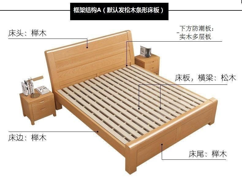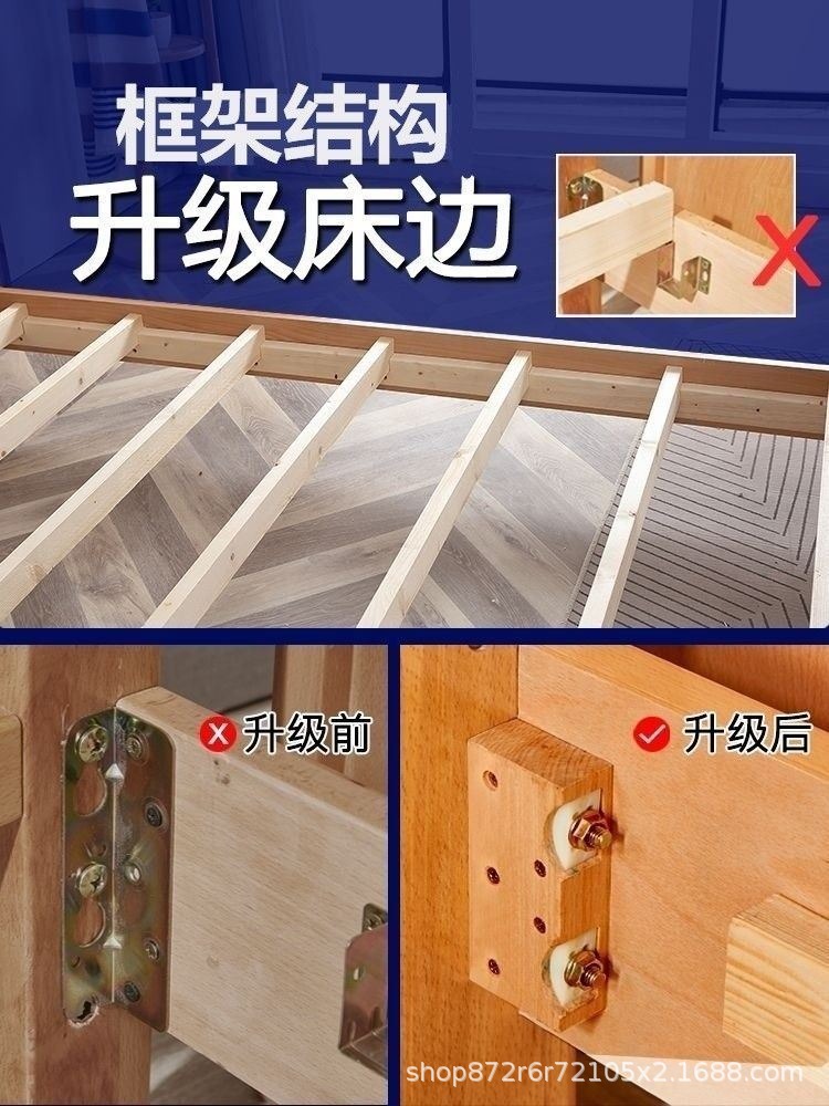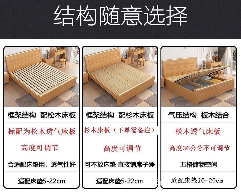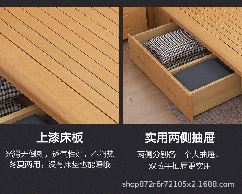 Nhà máy sản xuất giường gỗ sồi nguyên khối bán trực tiếp Giường đôi 1,8m 1,2/1,35m Giường trẻ em 1,5m Phòng ngủ chính căn hộ nhỏ