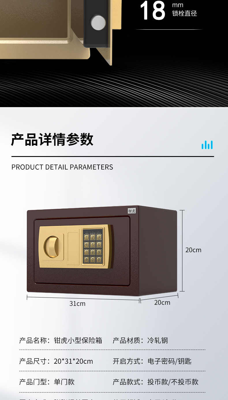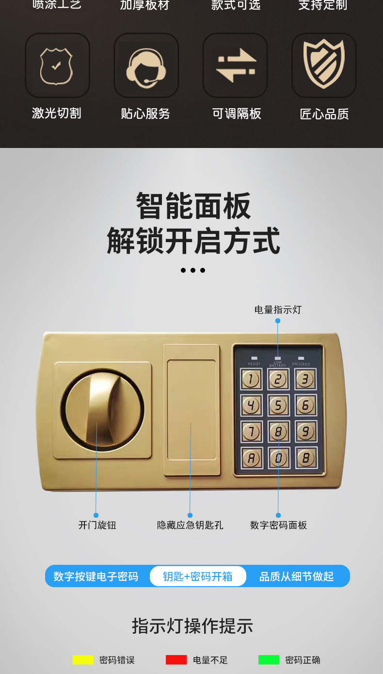 Sản phẩm nổi bật với các tính năng: Nhà máy sản xuất két an toàn Clipper xuất khẩu xuyên biên giới độc quyền xuất khẩu 20E mật khẩu điện tử nhỏ an toàn tại nhà máy giao hàng trực tiếp. Quý khách có nhu cầu mua Két sắt nhập khẩu vui lòng liên hệ với chúng tôi để được tư vấn hỗ trợ. Dịch vụ mua hàng Trung Quốc sẽ hỗ trợ quý khách mua hàng từ nhà cung cấp và giao tới tận tay quý khách hàng..