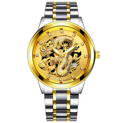 Nhà máy sản xuất trực tiếp đai thép vàng dập nổi rồng vàng phi cơ kinh doanh hợp kim dây đeo kim cương lịch thạch anh nam