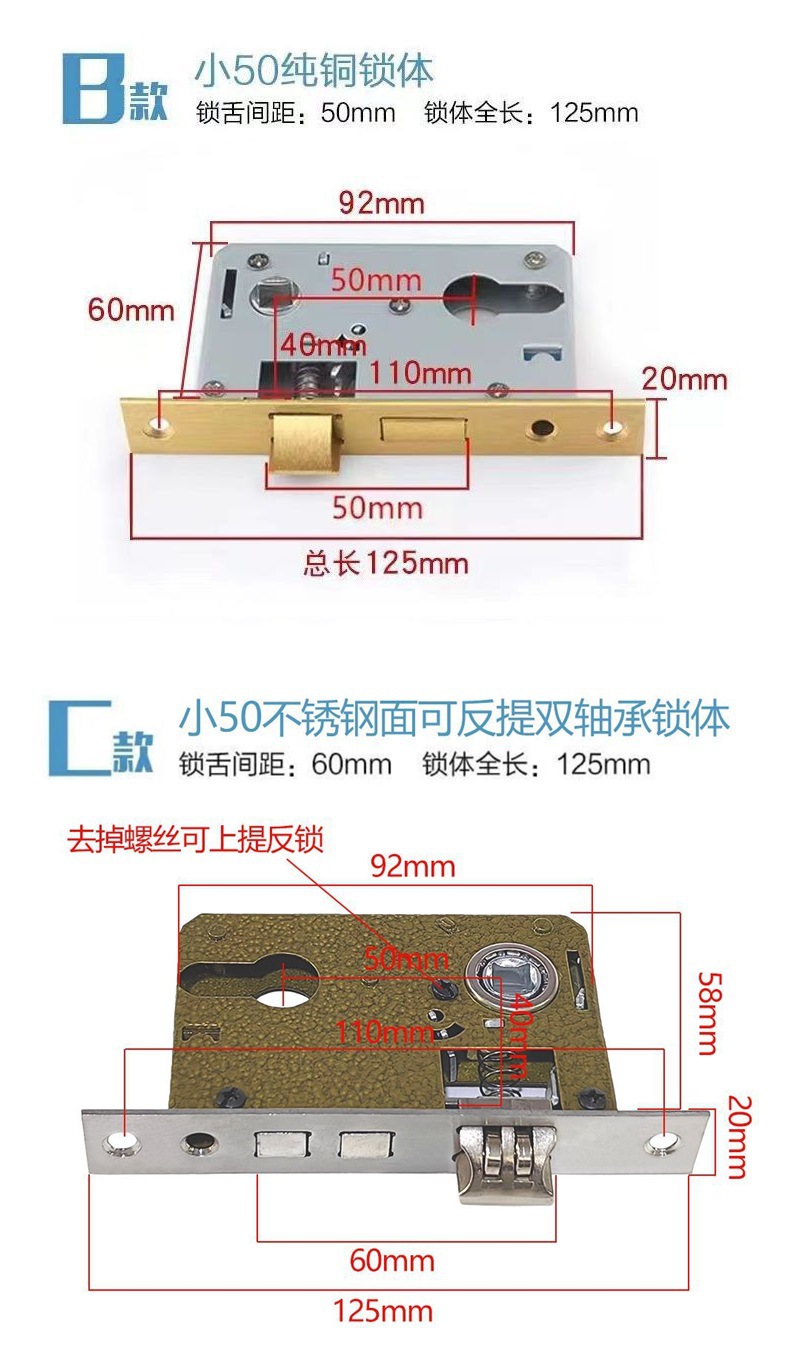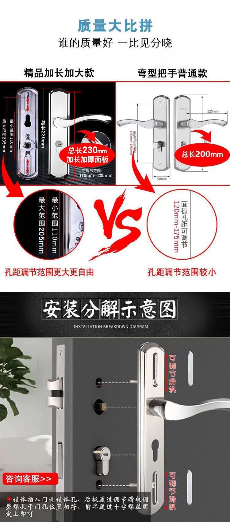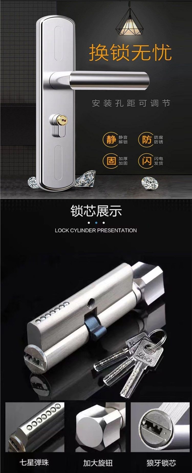 Nhà máy sản xuất trực tiếp Khóa cửa phòng ngủ Khóa cửa miễn phí bấm khóa thép không gỉ hộ gia đình cửa gỗ phổ trong nhà Khóa cửa xử lý cửa