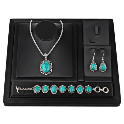 Nhà máy Trực Tiếp Bán Châu Âu và Châu Mỹ Đồ Trang Sức Sáng Tạo Vòng Tay Màu Ngọc Lam Bộ Bông Tai Vòng Cổ AliExpress Ebay Bán Chạy