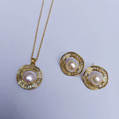 Nhà máy trực tiếp bán vòng cổ ngọc trai vòng tròn đồng tâm nước ngọt tự nhiên ngọc trai thật Đồng mạ vàng bảo quản màu của Mỹ khảm zircon