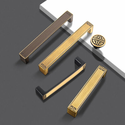 Nhà máy trực tiếp cung cấp cửa tủ phong cách Trung Quốc mới tay cầm bằng đồng đầy đủ một lỗ bằng đồng thau nguyên khối ngăn kéo tủ quần áo nội thất xử lý