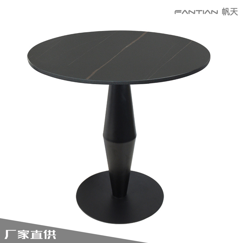 Nhà máy trực tiếp cung cấp sắt sơn đen chân bàn hình đặc biệt lưới sáng tạo bảng đá đỏ bàn ăn bàn ăn tròn tối giản hiện đại