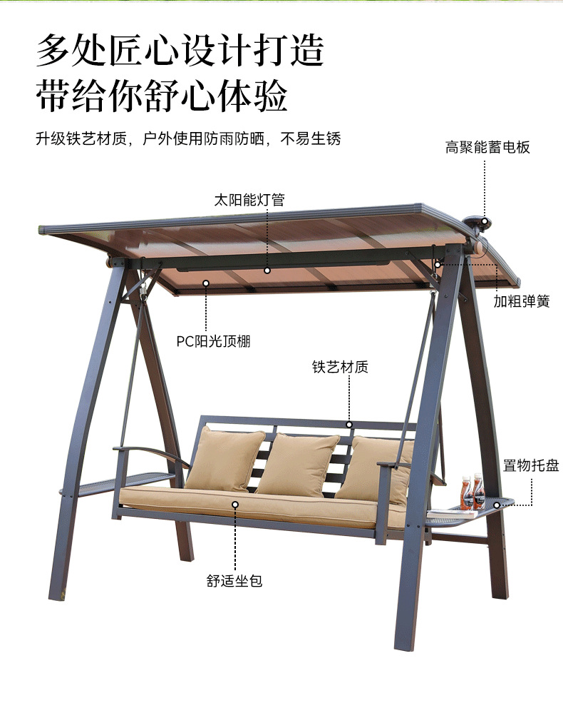Nhà Ngoài Trời Sắt Đu Đôi Treo Ghế Sân Vườn Giải Trí Ba Người Ghế Xích Đu Ngoài Trời Xích Đu Ghế Xích Đu