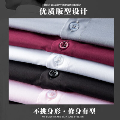 Nhà sản xuất bán buôn áo sơ mi nam tay dài trơn màu sơ mi công sở chuyên nghiệp sơ mi nam không ủi