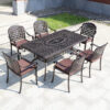 Nhà sản xuất bán buôn ban công ngoài trời bàn ghế nhôm đúc kết hợp bàn ăn nhôm đúc bàn ghế sân vườn bàn ghế kim loại ngoài trời thông thường được thiết kế để tạo điểm nhấn cho khu vực sân vườn, ban công hoặc không gian ngoài trời.