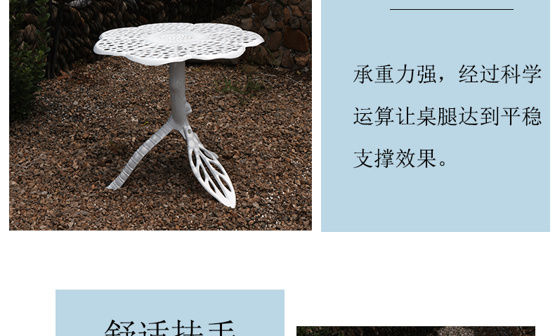 Nhà sản xuất bán buôn phong cách Châu Âu sân vườn ban công khu vui chơi giải trí sáng tạo bàn ghế ngoài trời hợp kim nhôm đúc nhà kết hợp 为您推荐: 本产品包物流运费 ,发物流自提!偏远地区补差价 看这里:1.我们是厂家直销,欢迎随时验厂。 2.我们毛坯成品均有现货。 温馨提示: 由于本行业的特殊性,偏远地区联系客服补差价。量大可咨询客服询价 可提供叫专车服务! 桌椅均为纸箱包装,内有珍珠棉气泡袋等填充物! 联系电话(微信同号): 13645891530, 365天*24小时不关机 有任何问题可以打电话咨询! 桌椅可以凭各自喜好随心搭配 有问题可及时联系客服 高纯度铝锭原料+先进铸铝工艺+扫金工艺 本店产品是自己在室内外真实拍摄的,难免因阳光、相机、显示器等原因出现略微色差,宝贝颜色请以实物为主! 如您需: 户外铸铝桌椅 休闲桌椅 阳台桌椅 铝合金桌椅 庭院桌椅 咖啡厅桌椅 别墅桌椅 度假区桌椅 花园桌椅 欧式桌椅 户外桌椅 总有一款是您的心仪之品! Mã sản phẩm: T005 Thương hiệu: Không có Màu sắc: Trắng Chấm đen Chất liệu: Nhôm Kích thước: Kích thước để bàn: 75 * 70cm Mẫu mã: T005 Phương pháp gia công: Đúc nhôm Thông số kỹ thuật: 90 Cho dù đó là nguồn xuất khẩu xuyên biên giới: Không Phong cách: Nhẹ sang trọng