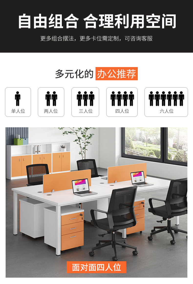 Nhà sản xuất cung cấp bàn ghế nhân viên 4 người kết hợp bàn nhân viên 6 người đơn giản văn phòng