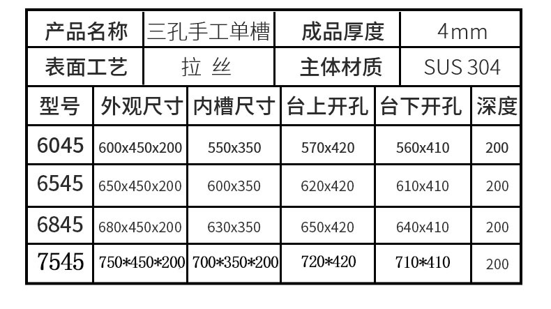 Nơi xuất xứ: Quảng Đông Thương hiệu: Jinjie Số mặt hàng: Vòi đơn thủ công Loại vòi: Nóng và lạnh Kích thước mở: 6845 Màu sắc: Thép không gỉ 201 Khe đơn thủ công/Thủ công bằng thép không gỉ 304 Khe đơn/Thủ công bằng thép không gỉ 304 dày 4.0 Khe đơn/4.0 Mẫu bể đơn thủ công bằng thép không gỉ 304 dày: 6845 Độ dày: 3.0mm Trọng lượng tịnh: 10kg Thông số kỹ thuật: 5843/6045/6545/6845/7545/7545 Khe cắm: Bể đơn Chứng nhận: Không Có Không Hộp đựng xà phòng: Không Người nộp thuế chung: Không Chất liệu: thép không gỉ Quá trình tạo hình: Hàn thủ công. Có hoặc không có giá thoát nước: Có. Xử lý bề mặt: Vẽ. Độ sâu rãnh: 220mm. Kích thước tổng thể: 6845. Có dành riêng cho xuất khẩu xuyên biên giới không? Nguồn: Không. Phong cách: Hiện đại và đơn giản. Có hoặc không có giá thoát nước: Có Tổng trọng lượng: 11kg.