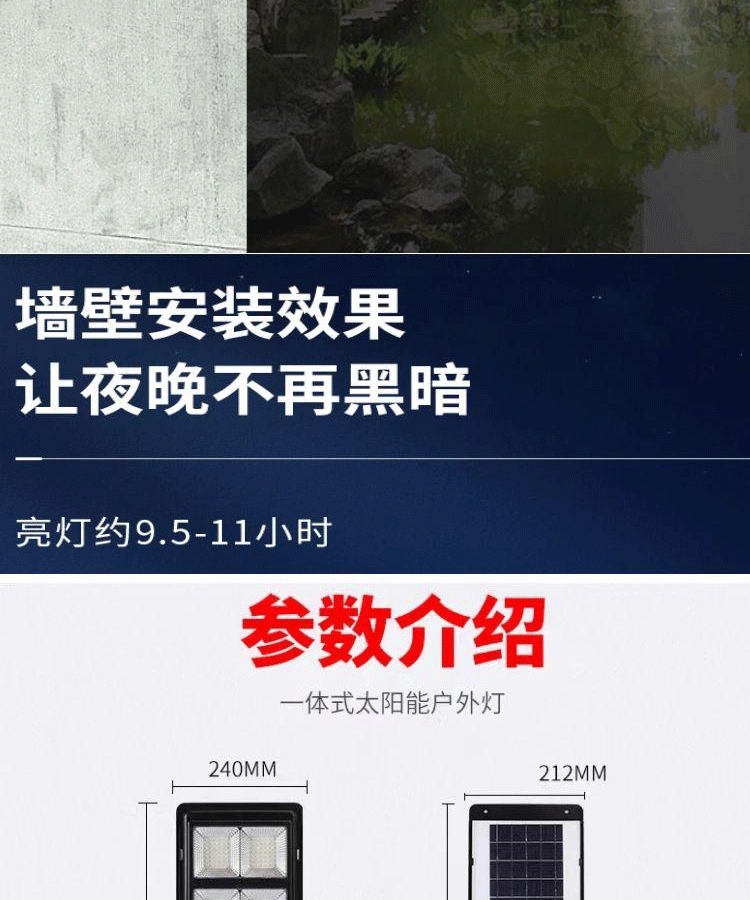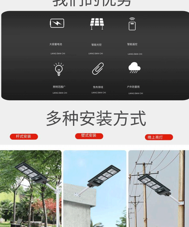 Nhà sản xuất đèn đường năng lượng mặt trời ngoài trời không thấm nước xuyên biên giới sân nông thôn cơ thể con người cảm ứng đầu đèn đường tích hợp năng lượng mặt trời. Quý khách có nhu cầu mua Đèn năng lượng mặt trời vui lòng liên hệ với chúng tôi để được tư vấn hỗ trợ. Dịch vụ mua hàng Trung Quốc sẽ hỗ trợ quý khách mua hàng từ nhà cung cấp và giao tới tận tay quý khách hàng..Model: Đầu đèn đường tích hợp năng lượng mặt trời Được cấp bằng sáng chế: Không Chứng nhận: Không Loại công tắc: Cảm ứng Tuổi thọ: 50000 Có dành riêng cho xuất khẩu xuyên biên giới không?Nguồn cung cấp: Không Phân loại thông số kỹ thuật: 200w/300w/400w/400w Thời gian chiếu sáng liên tục : 12 giờ (đã bao gồm) )-16 giờ (không bao gồm) Xuất xứ: Trung Sơn, Quảng Đông Số sản phẩm: Diamond-777 Thương hiệu: Hạt đèn Langming Thương hiệu: Mulinsen Công suất định mức: 5 Thuộc tính 3: Nhà sản xuất đèn đường năng lượng mặt trời Thuộc tính 1: Đèn đường năng lượng mặt trời head Thuộc tính 2: Đèn đường năng lượng mặt trời nói chung có bị đánh thuế hay không Người: Không Loại nguồn sáng: LED Mức độ bảo vệ: IP65 Điện áp: 6 Kích thước: 447*70*342 Hình dạng: Trừu tượng Phong cách: Nhập khẩu từ Đông Nam Á: Không Loại: Điều khiển từ xa + Cảm biến ánh sáng