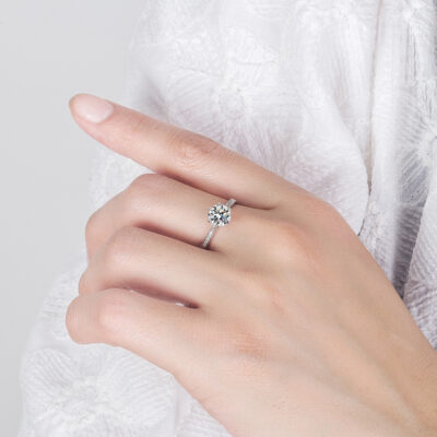 Nhà sản xuất nguồn Weihua Bán buôn Carat Nhẫn sống miệng Nữ Âu Mỹ Cầu hôn Sáu móng vuốt Mô phỏng Nhẫn kim cương Cầu hôn Nhẫn cưới