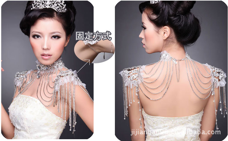 Nhà sản xuất tại chỗ Châu Âu và Châu Mỹ kim cương giả dây đeo vai cô dâu bộ dây chuyền váy cưới phụ kiện hiệu suất váy công chúa phụ kiện dây chuyền vai