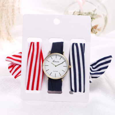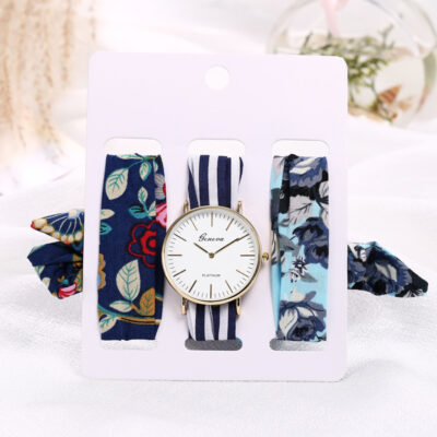 Nhà sản xuất tại chỗ thương mại nước ngoài bán chạy đồng hồ nữ dây vải hoa ba món đồng hồ thạch anh đồng hồ tóc thời trang dây đeo đồng hồ