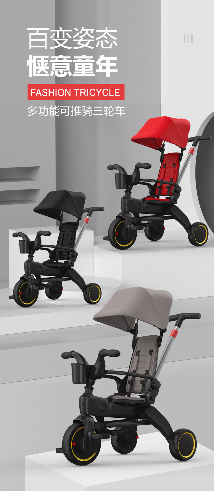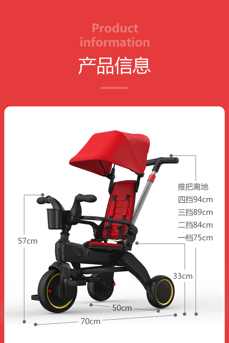 Nhà sản xuất xe đạp ba bánh gấp dành cho trẻ em với xe đẩy có mái che