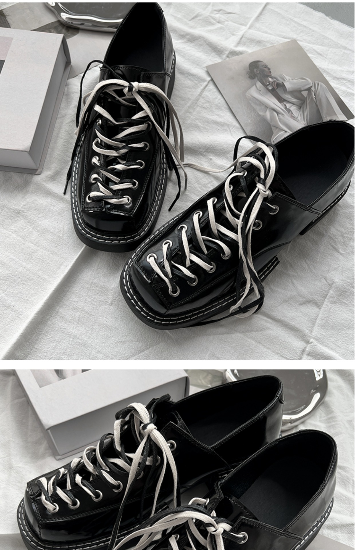 Nhà tạo mẫu tóc nam gầy nhỏ thích hợp giày nam tối màu của Anh đầu vuông ren đế dày giày da nhỏ phù hợp với thời trang