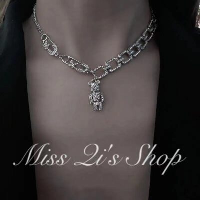Nhà thiết kế phong cách ngọt ngào và mát mẻ thích hợp tình yêu khâu bạc kim cương gấu đá quý mặt dây chuyền vòng cổ hình trái tim bằng thép titan dây chuyền xương đòn nữ
