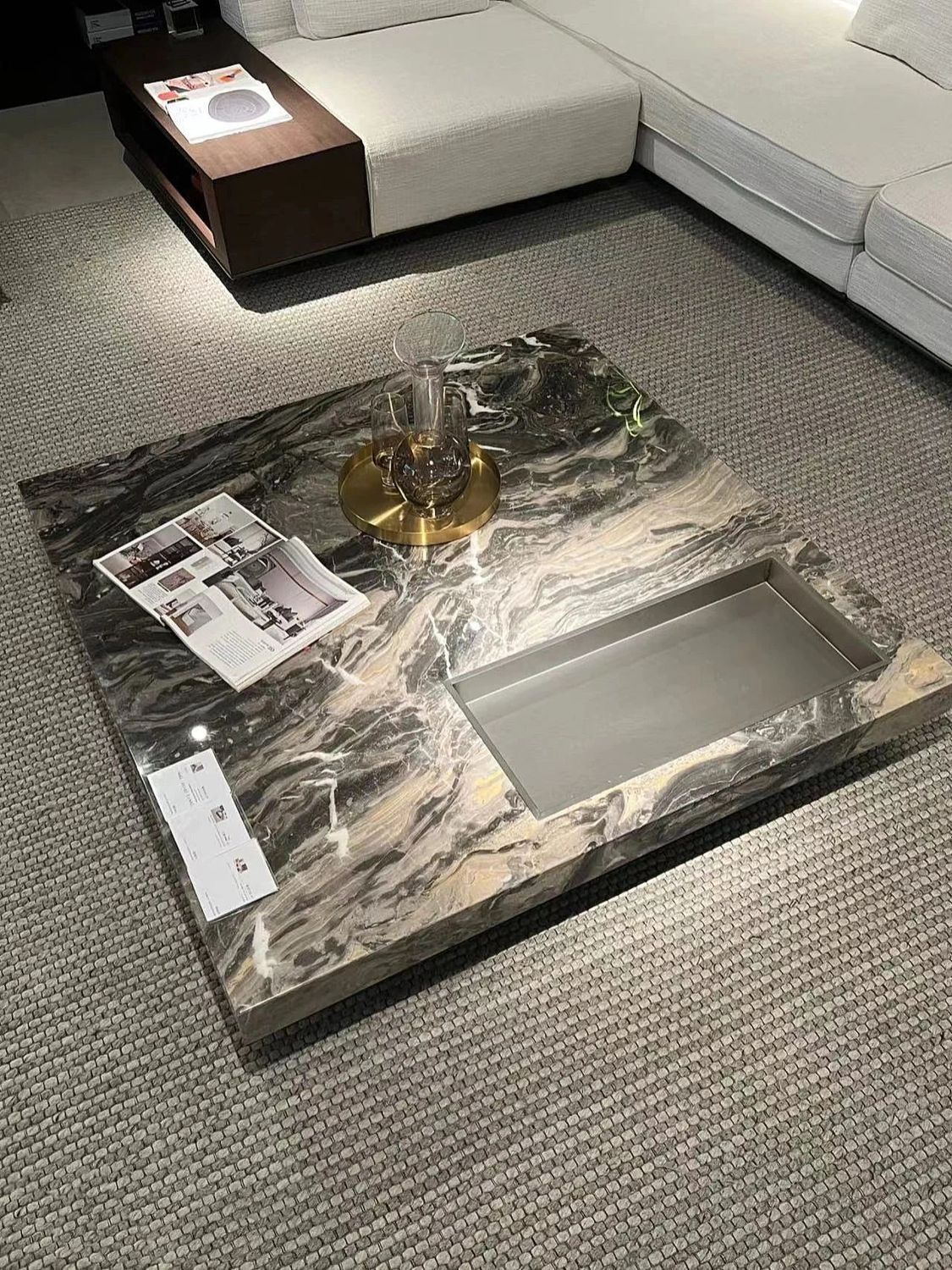 Nhà thiết kế tối giản người Ý lưới Đẹp đỏ sang trọng biệt thự bằng đá cẩm thạch phòng khách cỡ lớn bàn cà phê hình chữ nhật