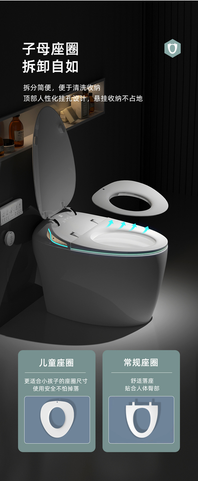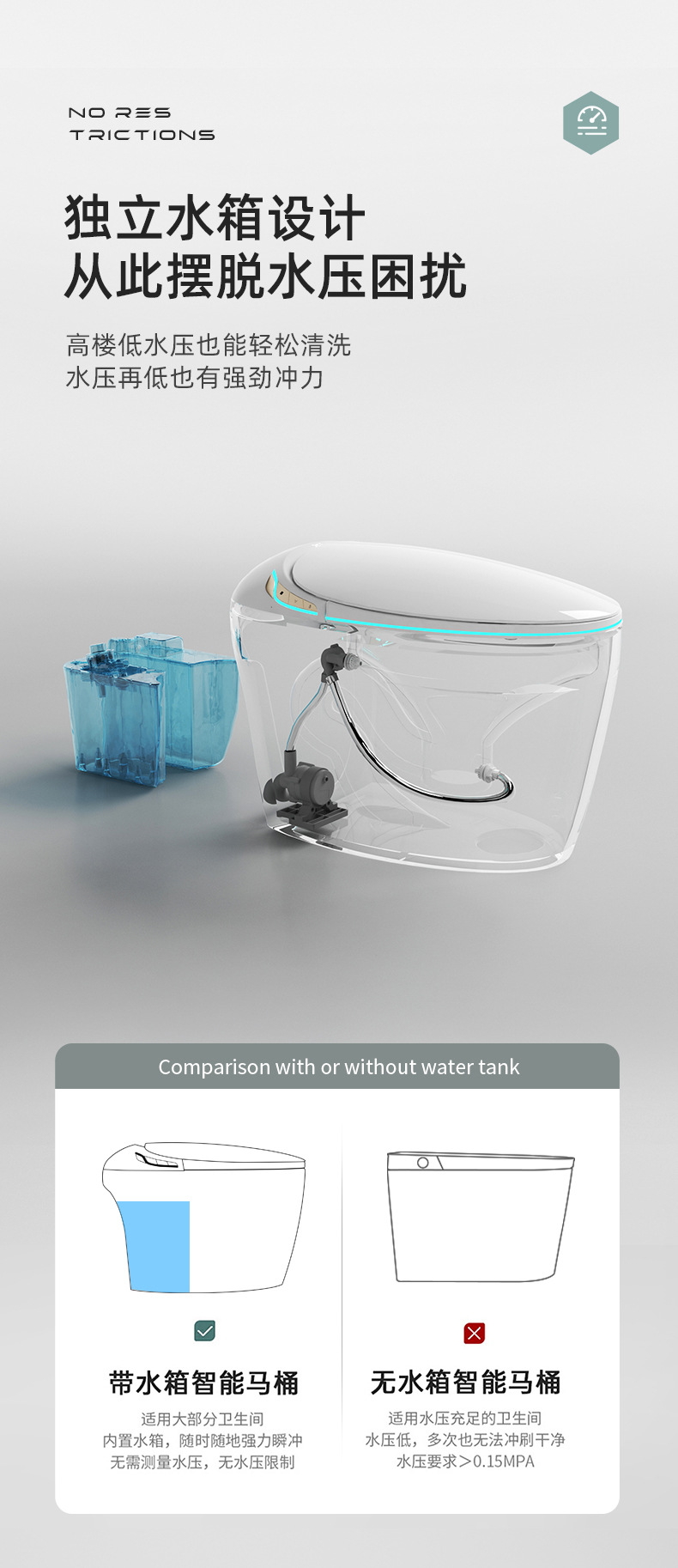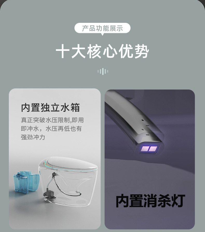 Nhà vệ sinh lật tự động một mảnh thông minh hình quả trứng không giới hạn áp suất nước sưởi ấm tức thì nhà vệ sinh cảm ứng bằng giọng nói